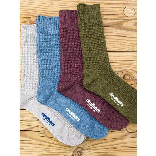 – Ethically sourced Merino Wool from New Zealand.- Non-Mulesing AWEX Certified, animal friendly Merino Wool from New Zealand.- Naturally high level of water wicking keeps you dry.- Temperature regulation, Merino Wool Keeps you comfortable in all environments and has a high level of breathability.- Waffle knit pattern on foot and leg.- 10″ Crew length.- Mid weight yarn, not too thin, not too thick.
