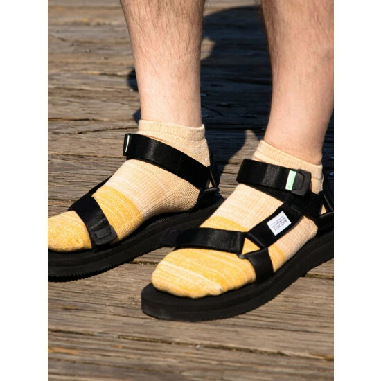 – Organic cotton yarn made in Japan- 1×1 compression rib at the arch of the foot and the ankle for improved support and fit- Rib stops the sock from moving around on the foot to improve the life span on the sock- Super soft! Terry pile purl side for extra comfort- 9″ Crew length- Mid weight yarn- Great for all footwear- One Size / Mens US 7.5 – 12.5