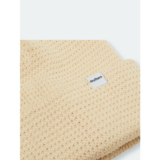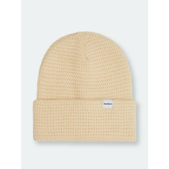 – Classic waffle knit hat.- Made from 100% organic cotton in Osaka, Japan.- FSC certified recycled hang-tag and recycled / recyclable poly bag.- Give them a stretch! If the hat feels too tight at first, it’s because we use a special high-quality elastic yarn to improve the hat’s retention value. At Druthers, we always disliked buying beanies only to have them blown out and misshapen after only 1 season. To solve that, we have sourced a high quality elastic yarn that will improve the products life cycle as well allow the hat to keep its shape for longer. Not more elastane per hat, just better yarns. Druthers highly believes that a key element to sustainability is a long lasting product!