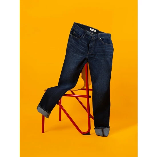 Our most popular slim fit jeans are sharp but not skinny, a silhouette we first fell for in Amsterdam. Crafted from high retention fabric that’s engineered to prevent baggy knees and saggy waistbands, it’s versatile, high performance denim that’s extremely durable and easy to dress up or down. Cable is a versatile, clean dark wash with antique copper hardware.