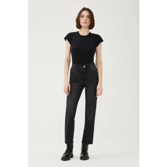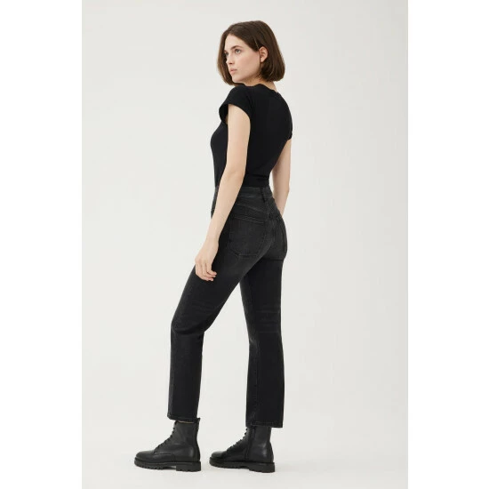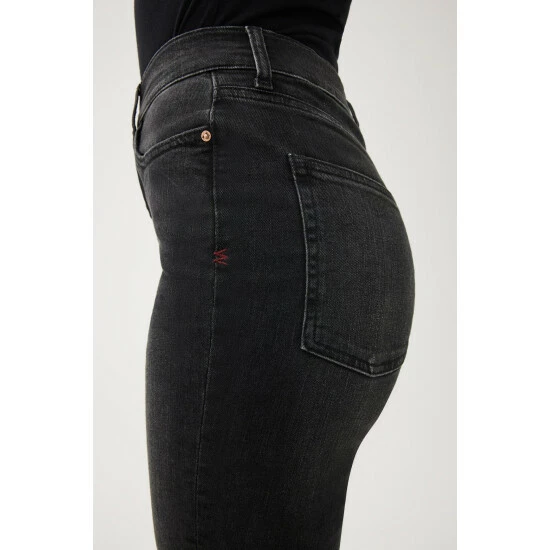 They have perfected the high-rise, vintage-inspired straight leg jean. ASE flows straight from the thigh for maximum flattery and features a straight waistband, making it the perfect companion to your favorite crop tops and bodysuits. Nightfall is a washed black denim with subtle fading throughout.How It Feels:Classic is a mid-weight, strong hold denim that combines innovative fibers and cotton to create ultimate low-impact jean that looks vintage but feels modern. It has a supple and slightly firm feel still being breathable and slightly stretchy.