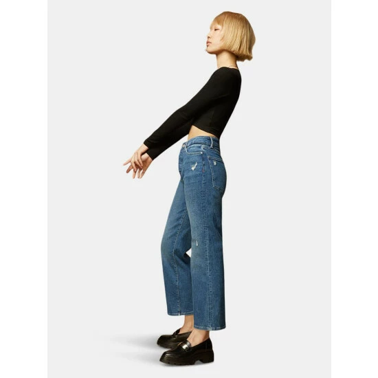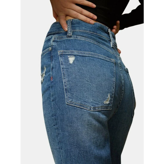 FIT & WASH:We’ve perfected the high-rise, vintage-inspired straight leg jean. ASE flows straight from the thigh for maximum flattery and features a straight waistband, making it the perfect companion to your favorite crop tops and bodysuits. This is a low stretch style. Valley is a medium indigo wash with baked-in whiskers and heavy processing throughout for a lived-in look. HOW IT FEELS:Classic is a mid-weight, strong hold denim that combines innovative fibers and cotton to create ultimate low-impact jean that looks vintage but feels modern. It has a supple and slightly firm feel still being breathable and slightly stretchy.