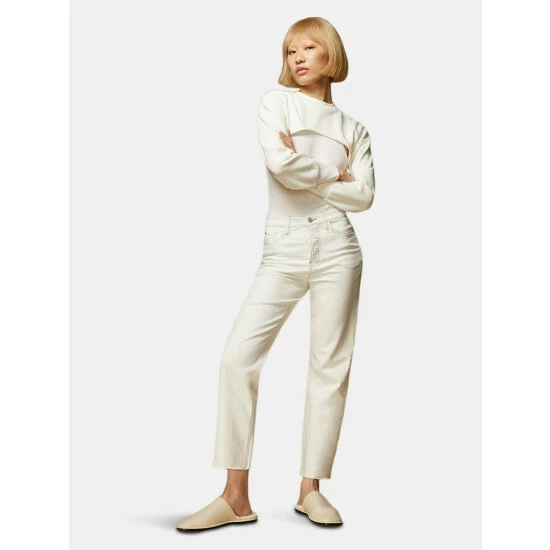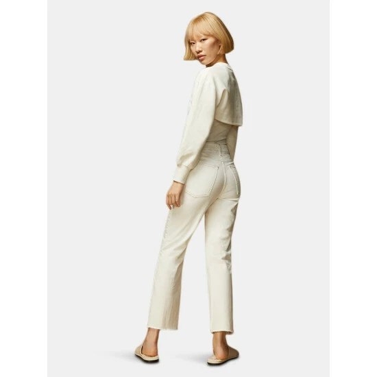 FIT & WASH:We’ve perfected the high-rise, vintage-inspired straight leg jean. ASE flows straight from the thigh for maximum flattery and features a straight waistband, making it the perfect companion to your favorite crop tops and bodysuits. This is a low stretch style. Consider sizing up for a relaxed look. Townsend is an ultra-light wash with busted knees and grinding at hem. HOW IT FEELS:Classic is a mid-weight, strong hold denim that combines innovative fibers and cotton to create ultimate low-impact jean that looks vintage but feels modern. It has a supple and slightly firm feel still being breathable and slightly stretchy.
