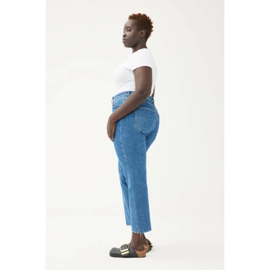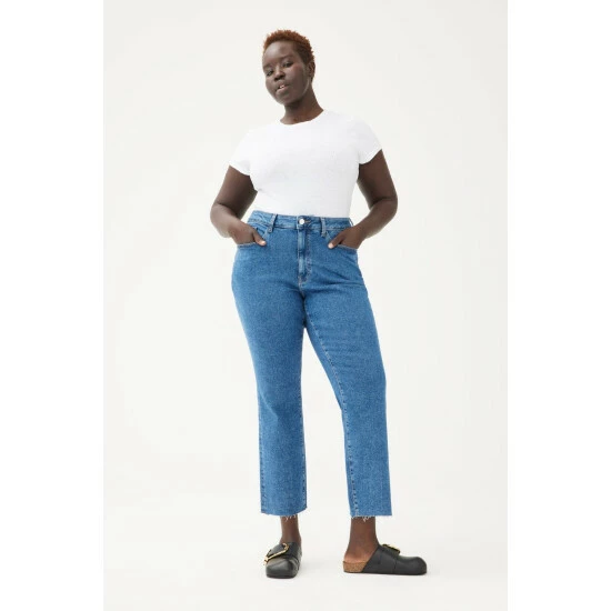 This perfect high-rise, vintage-inspired straight leg jean. ASE flows straight from the thigh for maximum flattery and features a straight waistband, making it the perfect companion to your favorite crop tops and bodysuits. Pacific is a clean, mid-to-dark wash with a raw hem. Oneder is a soft, smooth denim that wears like an ultra-light second skin that supports and shapes you without ever being uncomfortable. This tightly woven, ultra light fabric is constructed using ultra soft modal, cotton and stretch fibers.