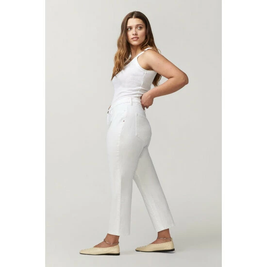 The high-rise, vintage-inspired straight leg perfect jean. ASE flows straight from the thigh for maximum flattery and features a straight waistband, making it the perfect companion to your favorite crop tops and bodysuits. 24 hours is a light vintage wash with destruction at the knee. This is a low-stretch style. Consider sizing up if between sizes.Classic is a mid-weight, strong hold denim that combines innovative fibers and cotton to create ultimate low-impact jean that looks vintage but feels modern. It has a supple and slightly firm feel still being breathable and slightly stretchy.