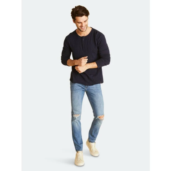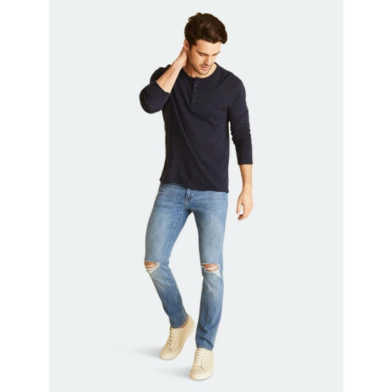 Our most popular slim fit is sharp but not skinny, a silhouette we first fell for in Amsterdam. Crafted from high retention fabric that’s engineered to prevent baggy knees and saggy waistbands, it’s a versatile, high performance jean that’s extremely durable and easy to dress up or down.
