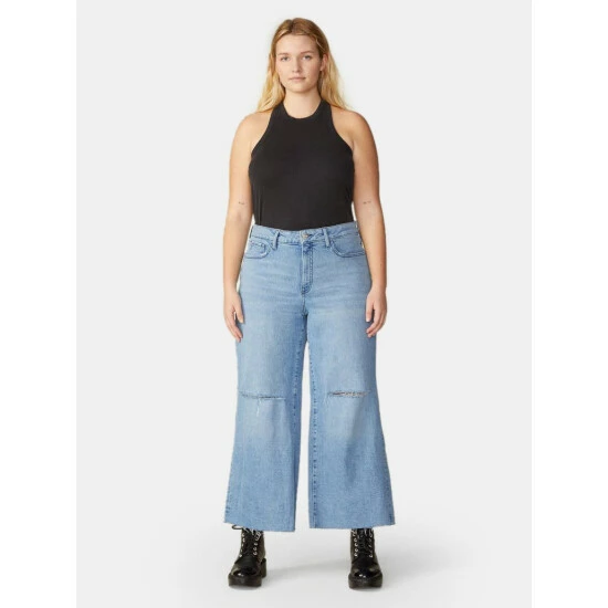 A nod to trendsetting style in Seoul, this high rise style is a fresh alternative to your skinnies. Sculpts through the midsection and widens out through the leg to a flattering A-line shape. Modern, timeless and versatile. Dakota is a mid-light indigo wash with destruction at the knee and hem.How It Feels: Classic is a mid-weight, strong hold denim that combines innovative fibers and cotton to create ultimate low-impact jean that looks vintage but feels modern. It has a supple and slightly firm feel still being breathable and slightly stretchy.
