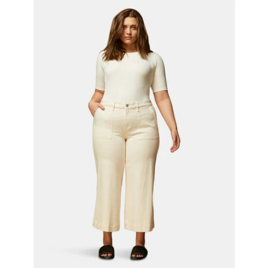 A nod to trendsetting style in Seoul, this high rise style is a fresh alternative to your skinnies. Sculpts through the midsection and widens out through the leg to a flattering A-line shape. Modern, timeless and versatile. Bone is an ultra pale pink wash with on-trend utility patch pockets.