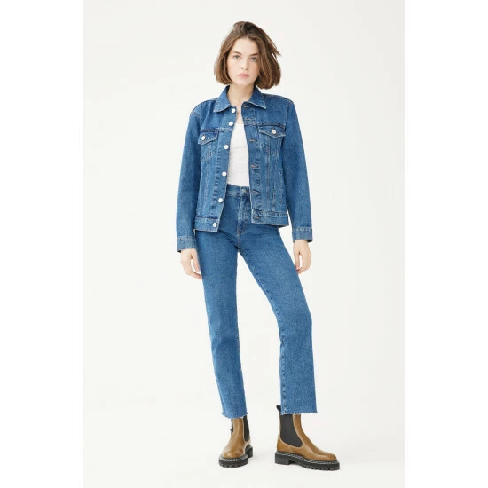 LBC is like your favorite handed down jean jacket, made better. Featuring a slightly boxy fit and vintage-inspired trucker seams and classic flap pockets for added vintage goodness. Pacific is a clean, mid-to-dark wash.How It Feels:Classic is a mid-weight, strong hold denim that combines innovative fibers and cotton to create ultimate low-impact jean that looks vintage but feels modern. It has a supple and slightly firm feel still being breathable and slightly stretchy.
