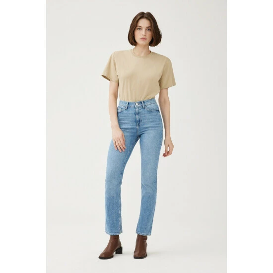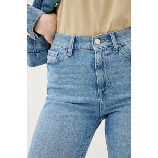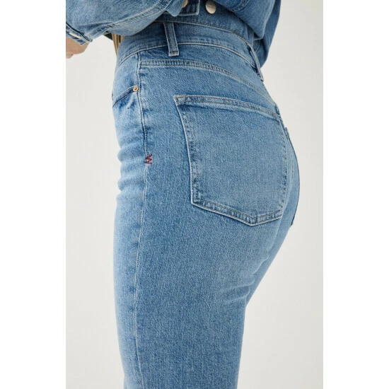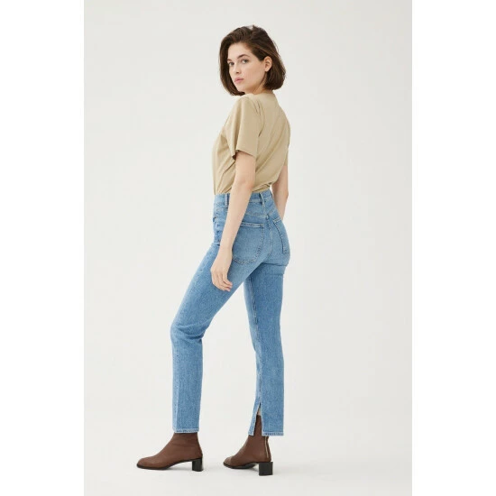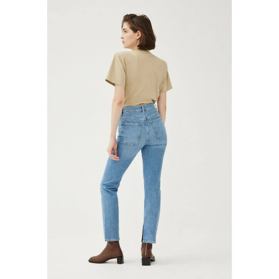 This happy medium between slim and straight, the MAB is a high rise fit with a straight leg throughout. A full length inseam lends to an elegant look, punctuated by a slit at the hem. Clare is a mid-to-light wash with subtle fading throughout. This is a low stretch fabric. Warp + Weft recommend you to sizing up if between sizes.How It Feels: Classic is a mid-weight, strong hold denim that combines innovative fibers and cotton to create ultimate low-impact jean that looks vintage but feels modern. It has a supple and slightly firm feel still being breathable and slightly stretchy.