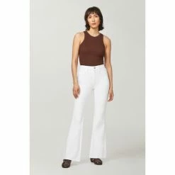 Designed with the best, most-sculpting high-rise top block that could formulate and paired with with a leg-lengthening flare for a little drama. Cranes is a clean, white denim with silver hardware. This is a low-stretch style. Consider sizing up if between sizes.Classic is a mid-weight, strong hold denim that combines innovative fibers and cotton to create ultimate low-impact jean that looks vintage but feels modern. It has a supple and slightly firm feel still being breathable and slightly stretchy.