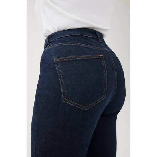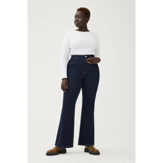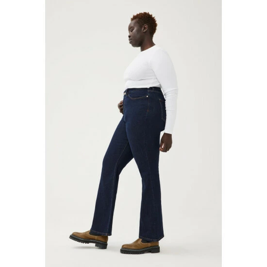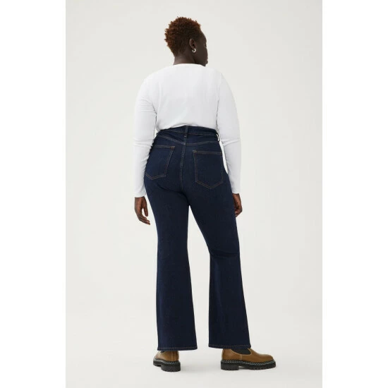 They took the best, most-sculpting high-rise top block that could formulate, and paired with with a leg-lengthening flare for a little drama. Drum is a clean, extra-dark indigo rinse wash with contrast stitching. This is a low stretch fabric. Warp + Weft recommend sizing up if between sizes.How It Feels:Classic is a mid-weight, strong hold denim that combines innovative fibers and cotton to create ultimate low-impact jean that looks vintage but feels modern. It has a supple and slightly firm feel still being breathable and slightly stretchy.
