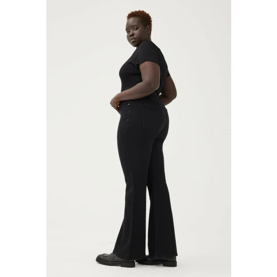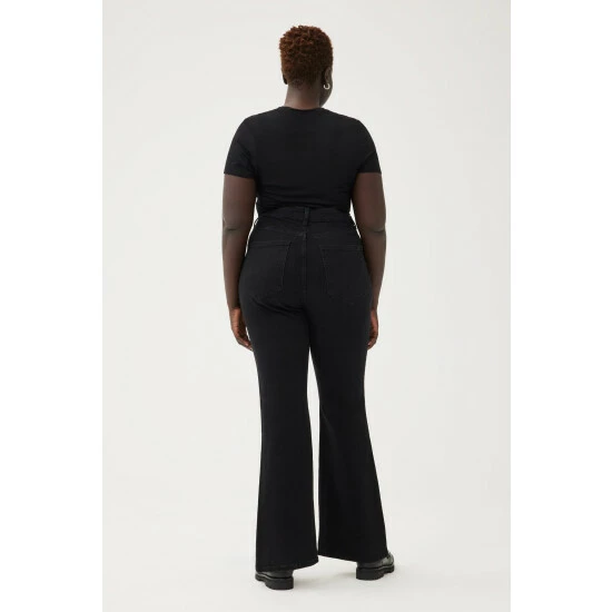 They took the best, most-sculpting high-rise top block that could formulate, and paired with with a leg-lengthening flare for a little drama. Well is a soft, black wash with tonal stitching.How It Feels:Classic is a mid-weight, strong hold denim that combines innovative fibers and cotton to create ultimate low-impact jean that looks vintage but feels modern. It has a supple and slightly firm feel still being breathable and slightly stretchy.