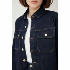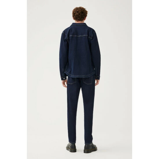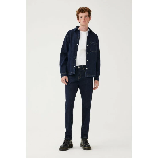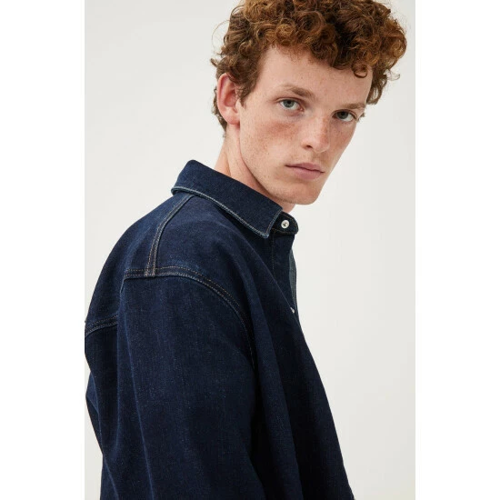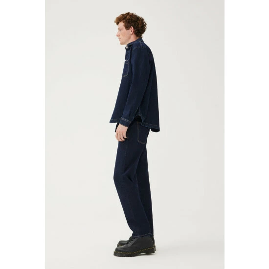 Somewhere between a shirt and a jacket, OAM is the ulimate shirt jacket. A smart layer designed to be worn over a t-shirt or on its own featuring snap closure and a chest pocket. Undertow is a clean, extra-dark indigo rinse wash with contrast stitching.How It FeelsClassic is a mid-weight, strong hold denim that combines innovative fibers and cotton to create ultimate low-impact jean that looks vintage but feels modern. It has a supple and slightly firm feel still being breathable and slightly stretchy.