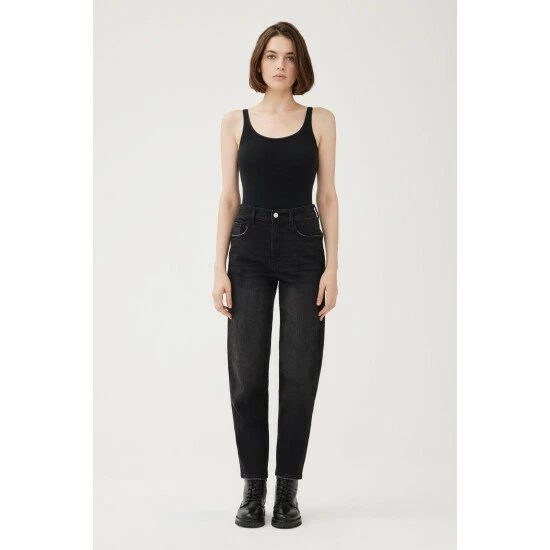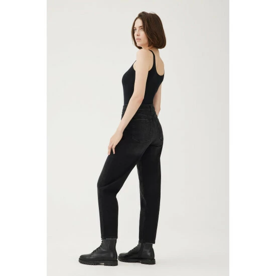 PAS is a vintage-inspired barrel fit with an ultra-high rise. Subtle volume in the thighs is punctuated by a gentle taper towards the ankle. Nightfall is a washed black denim with subtle fading throughout.How It Feels: Classic is a mid-weight, strong hold denim that combines innovative fibers and cotton to create ultimate low-impact jean that looks vintage but feels modern. It has a supple and slightly firm feel still being breathable and slightly stretchy.