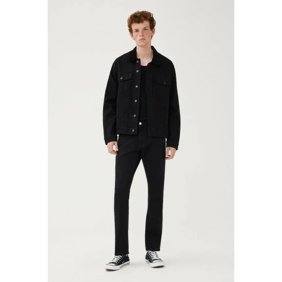 With a nod to Seattle and its legendary grunge scene, SEA is the denim jacket of thedreams. Perfectly detailed with classic styling and updated in the innovative performance denim with a modern fit, this year-round jean jacket is absolutely essential. Shadow is a clean, black wash with a black corduroy accent at the collar.How It Feels:Classic is a mid-weight, strong hold denim that combines innovative fibers and cotton to create ultimate low-impact jean that looks vintage but feels modern. It has a supple and slightly firm feel still being breathable and slightly stretchy.