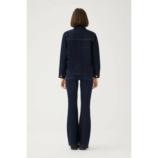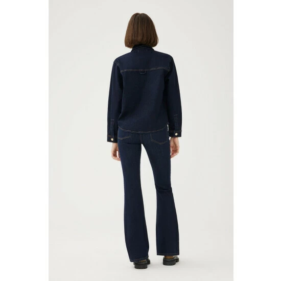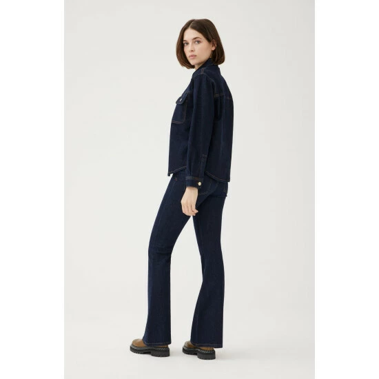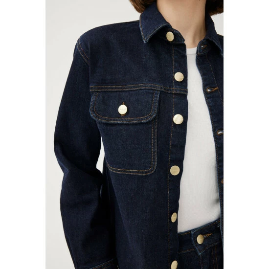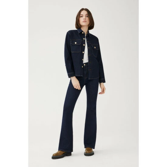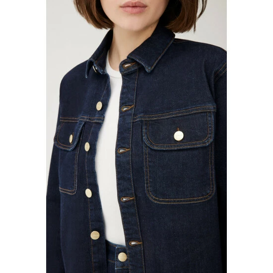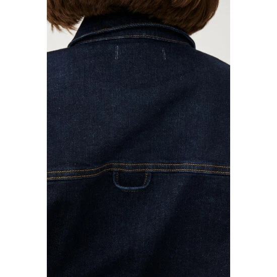 Somewhere between a shirt and a jacket, TFN is the ulimate shirt jacket. A smart layer designed to be worn over a t-shirt or on its own featuring snap closure and flap chest pockets. Drum is a clean, extra-dark indigo rinse wash with contrast stitching. This is a low stretch fabric. We recommend sizing up if between sizes.How It Feels:Classic is a mid-weight, strong hold denim that combines innovative fibers and cotton to create ultimate low-impact jean that looks vintage but feels modern. It has a supple and slightly firm feel still being breathable and slightly stretchy.